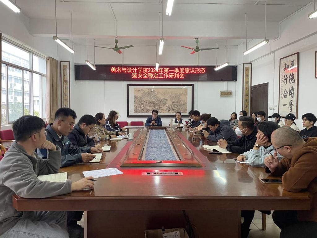 1月8日下午,美术与设计学院于我校东校区博学楼3-407会议室召开2024年第一季度意识形态暨安全稳定工作研判会。该院党委书记黄培英,全体辅导员及全体班主任参加会议。