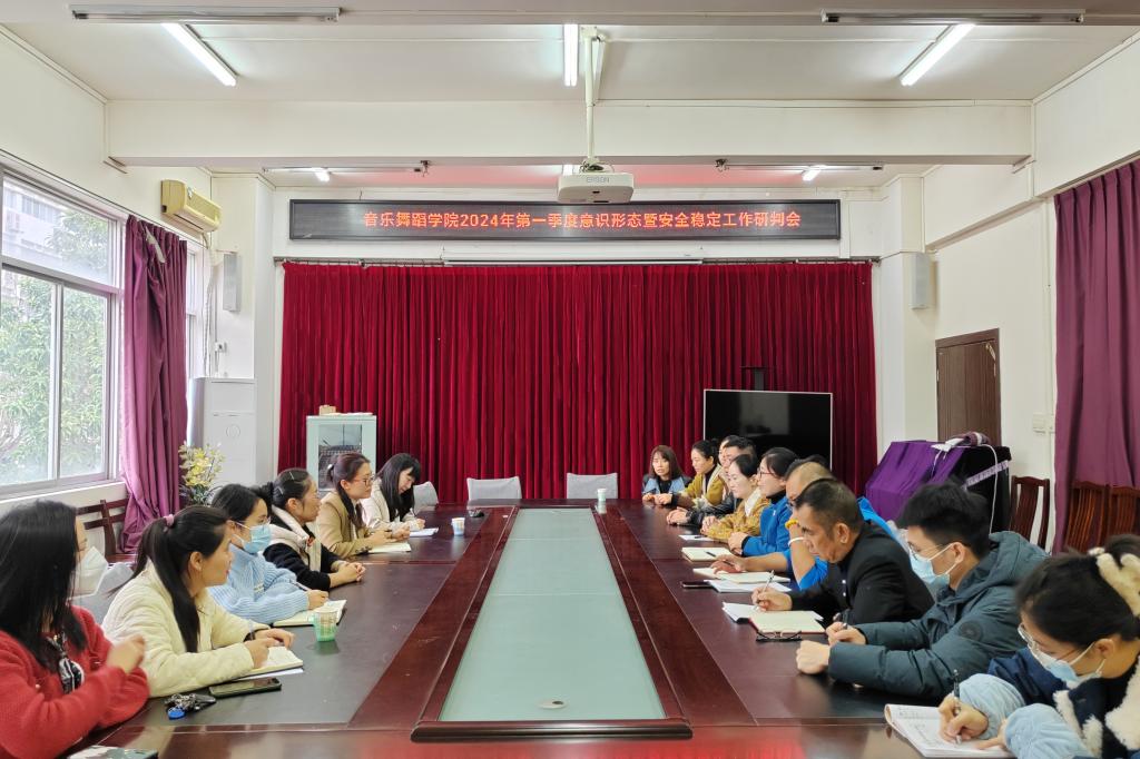1月11日,音乐舞蹈学院于学校东校区博学楼3-207会议室召开2024年第一季度意识形态暨安全稳定工作研判会。学院党委书记肖霞、院长陈力等领导班子成员以及全体行政教职工参加会议。
