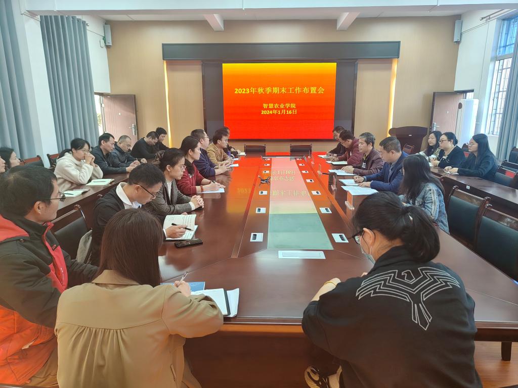 1月16日上午,智慧农业学院在该院会议室召开2023年秋季期期末工作布置会。党委书记梁修杰、院长王道波等学院领导班子以及全体教职工参加会议。