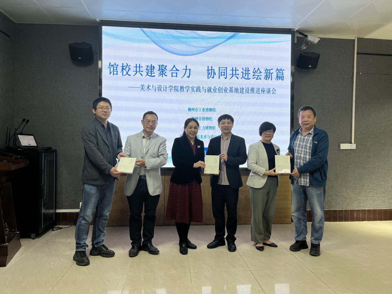 经过深入交流商讨,馆校双方在教学实践与就业创业基地的基础上,达成与“画说广西”团队开展课题研究的意向。会议最后,该院领导班子代表分别向柳州市工业博物馆、柳州市博物馆、玉林市王力博物馆捐赠我校“画说广西”团队课题研究成果书籍《高山景行 画说名村》,并参观考察漆艺工作室、陶瓷实训中心等教学实践基地。