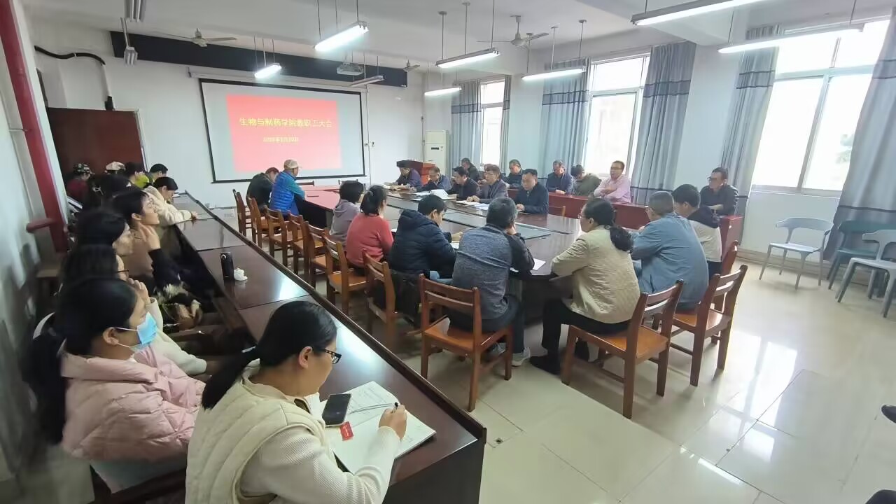 1月20日,生物与制药学院于我校东校区格物楼BA405会议室召开全体教职工会议,该院党委书记李国庆、院长贝永建等学院领导班子以及全体教职工参加会议,会议由李国庆主持。