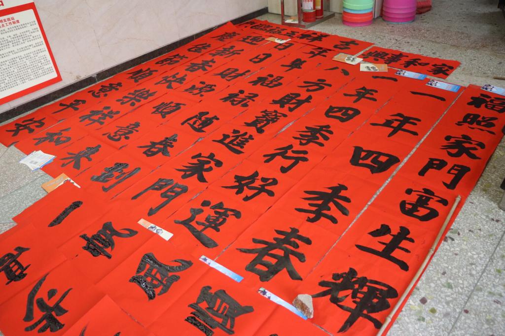 春联和“福”字寄托着人们对新年美好生活的祝愿。它寓意幸福、吉祥、团结和繁荣,志愿者们也于黑墨红纸间感受笔墨青丹之独特魅力,将春联寄予美好温情,送至村民手中。
