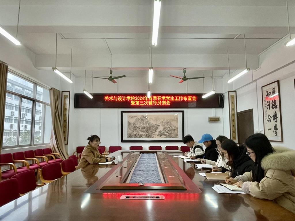 为明确新学期各项工作职责与目标,更好地推进新学期各项工作有序开展,3月2日下午,美术与设计学院于我校东校区博学楼3-407会议室召开2024年春季开学学生工作布置会暨第三次辅导员例会,该院党委副书记周美艳及全体辅导员参会。