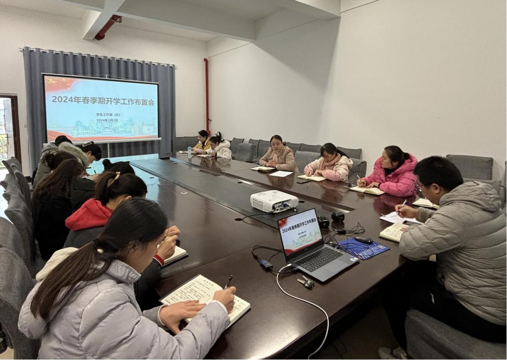 3月3日上午,学生工作部(处)在东校区新民楼D113会议室召开2024年春季期开学工作布置会。会议由学生工作处副处长文丽主持,部门全体人员参加会议。