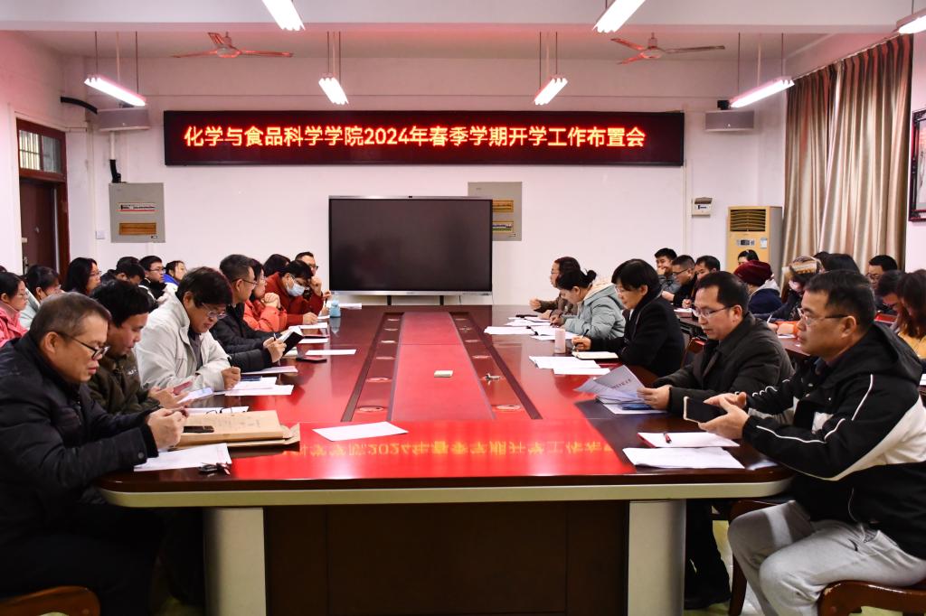 3月3日下午,化学与食品科学学院于我校东校区格物楼BA321会议室召开2024春季学期开学工作布置会,学院领导班子成员、全体教职工参加会议。会议由党委副书记刘里琳主持。