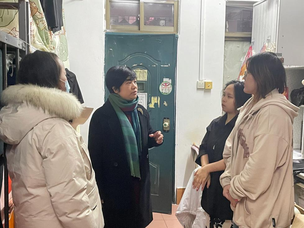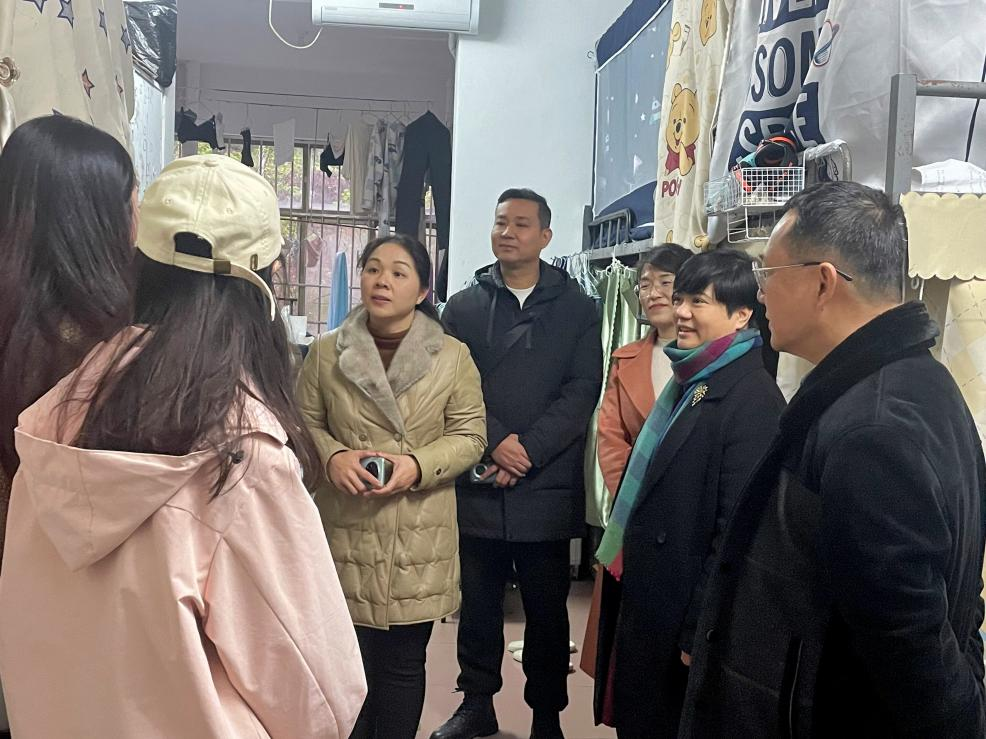 走访过程中,黄培英等与学生进行亲切交谈,详细了解学生的返校过程及到校安置情况,关注学生的身体健康和心理健康,对宿舍安全和卫生情况进行检查,并叮嘱学生们要自觉保持宿舍卫生,杜绝使用违规电器,严防火灾和人身意外事故的发生。她认真听取学生们提出有关宿舍建设的意见和建议,帮助学生解决生活和学习中的问题,并提醒学生们要增强反诈意识,注意个人财产安全,在学习和生活中遇到困难要主动联系辅导员、班主任,鼓励学生们要以更加饱满的心态去面对新学期的学习和生活。
