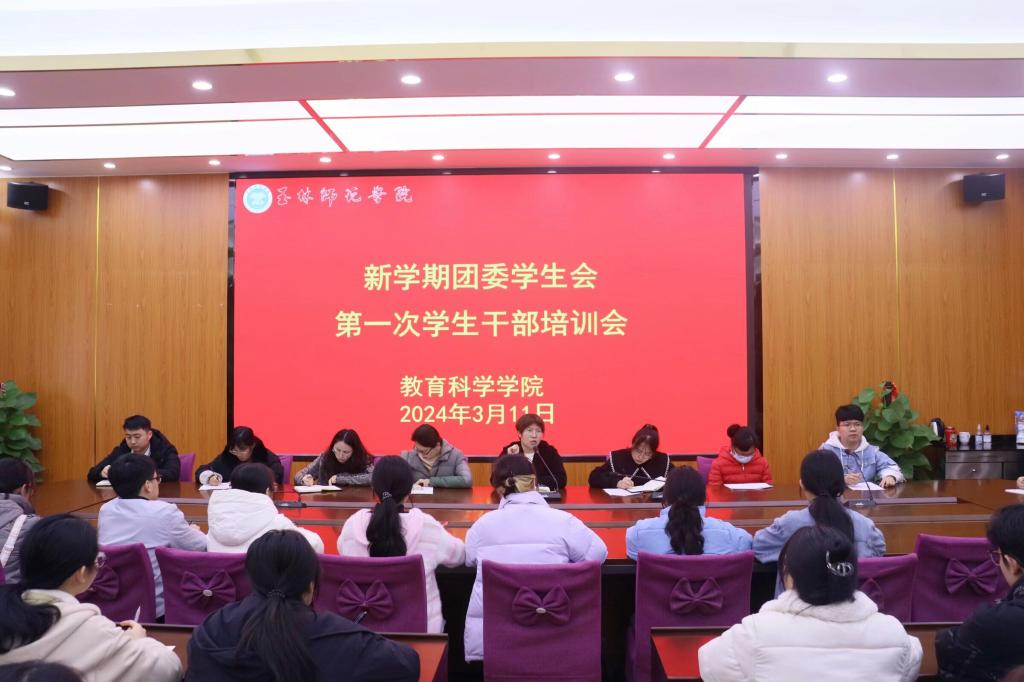 3月11日中午,教育科学学院于东校区明德楼学院会议室召开团委学生会学生干部培训会。本次会议由该院团委书记主持,该院党委副书记李尚芳主讲,全体学生干部参加。