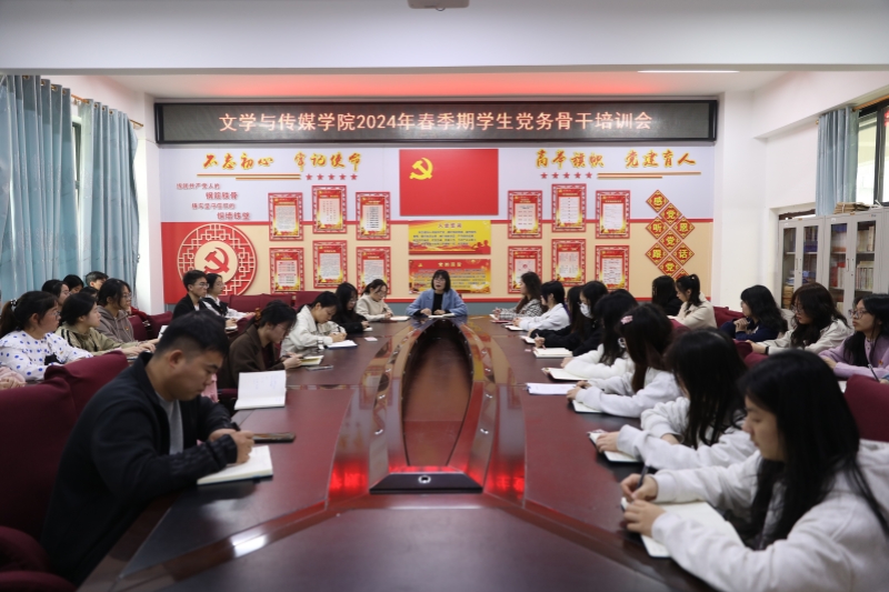 3月13日中午,文学与传媒学院在我校东校区至善楼206党建活动中心召开2024年春季期学生党务骨干培训会。会议由该院党委副书记邓荫金主讲。各学生党支部书记及全体学生党务骨干参加会议。