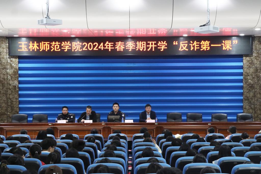 为遏制电信网络诈骗违法犯罪高发态势,有效预防和减少校园电信网络诈骗事件发生。3月7日下午,学校保卫处和校团委于东校区学术报告厅联合开展2024年春季期开学“反诈第一课”专题讲座,保卫处、团委主要负责人参加。讲座由玉林市反诈中心民警张逸康警官主讲,学校保卫处副处长甘露主持。