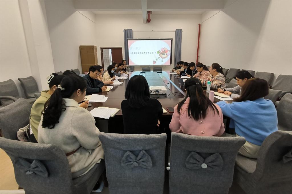 会上,各二级学院依次汇报春季期学生心理排查情况。与会人员就心理健康教育工作中遇到的疑难点进行交流与讨论。心理健康教育与咨询中心主任吕学巧就心理排查、心理季活动、工作站建设、入院研判等方面布置近期工作,并提出心理工作中的相关建议和注意事项。