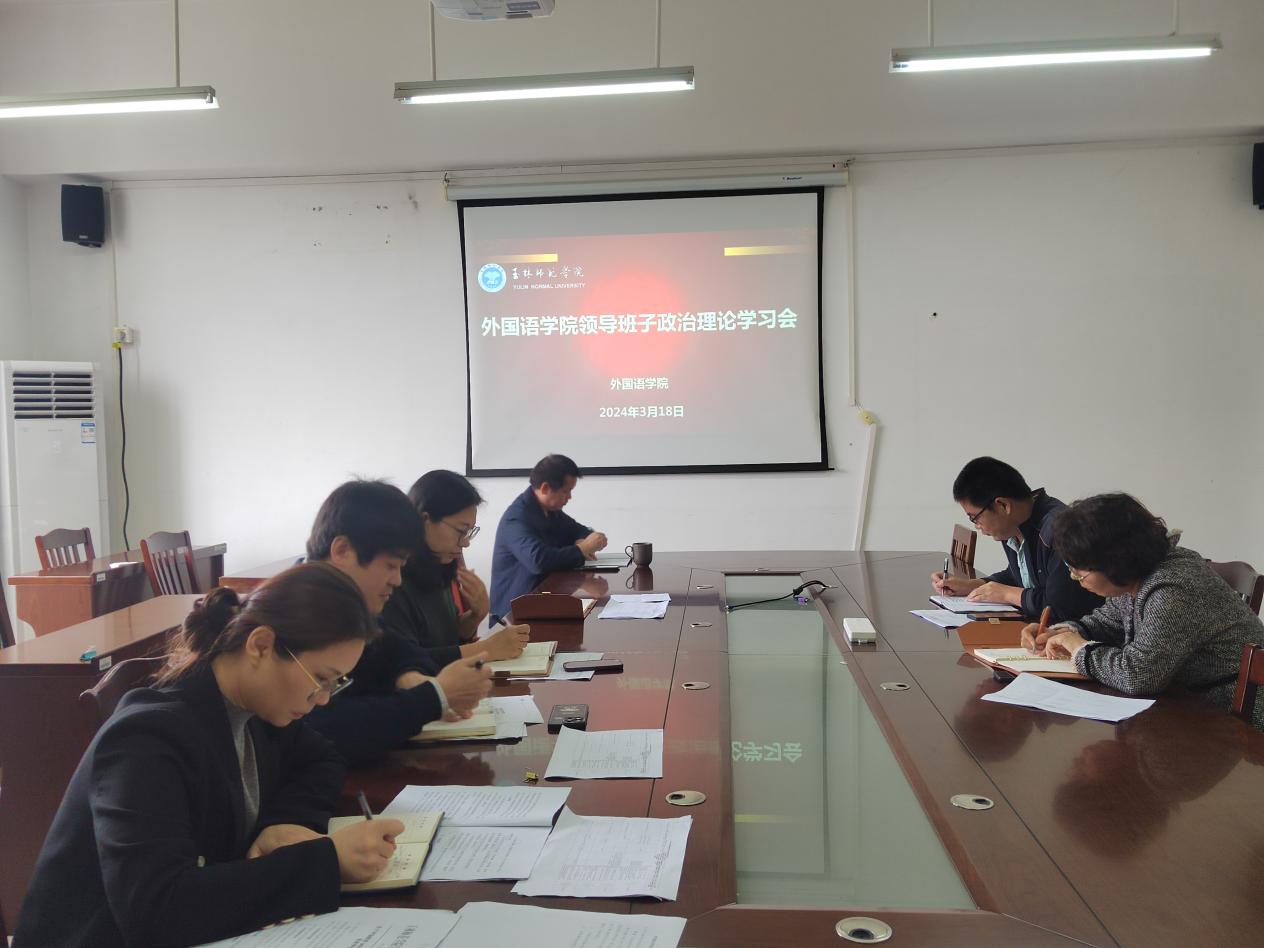 3月18日,外国语学院在东校区厚德楼1-306会议室召开政治理论学习会,全体领导班子成员参加会议。