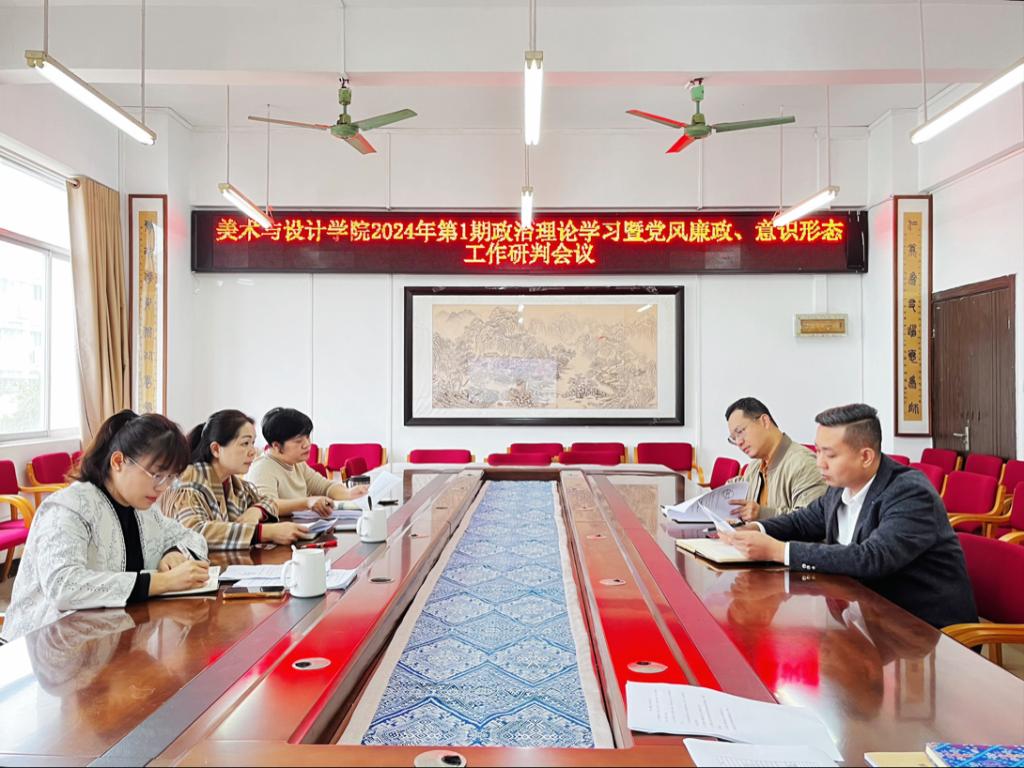 3月19日上午,美术与设计学院于我校东校区博学楼3-407会议室召开2024年第一次政治理论学习暨党风廉政、意识形态工作研判会,该院领导班子成员参加会议。