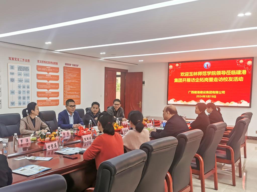 为加强校企合作,拓宽毕业生就业渠道,3月19日,物理与电信工程学院院长巫钊、招生就业处副处长梁丹及土木工程专业教师等一行5人赴广西建港建设集团有限公司开展访企拓岗暨走访校友活动。