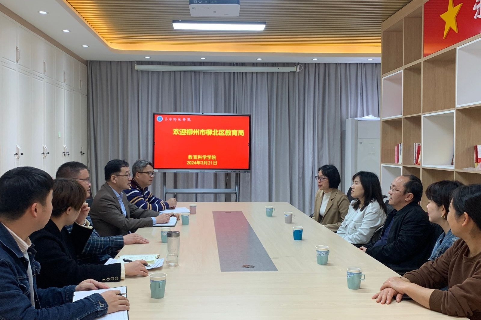 3月21日,教育科学学院在我校东校区明德楼401会议室与柳州市柳北区教育局召开访企拓岗交流座谈会,柳州市柳北区教育局副局长黄迪,该院领导班子成员以及双方教师代表参加会议。