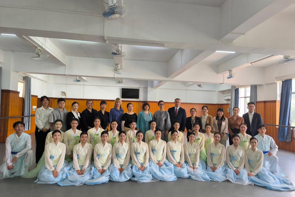 此外,双方师生围绕课程设置、教学安排、课堂管理等问题进行深入交流。会后,该院领导陪同卡尔切夫斯卡亚一行参观舞蹈教室、实训楼、教师能力发展中心等教学场地,现场观摩示范课程。