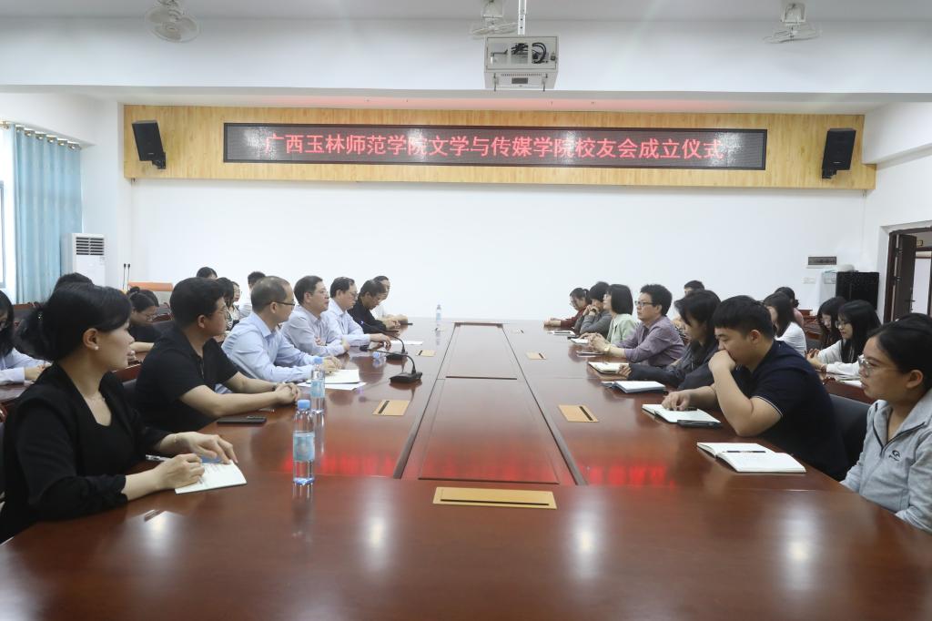 李家贵宣读关于成立广西玉林师范学院文学与传媒学院校友会的批复。校友代表、广西桂蚨实业有限公司董事长李进、中企云链股份有限公司华南区广西业务部资深总监谢海燕和广西斐然文化传播有限公司董事长严一铭分别分享自身学习、创业的经历与感悟,表达对母校的感激与热爱、对学院校友会成立的喜悦之情,表示会竭尽所能、积极行动,共同为母校的发展贡献力量。