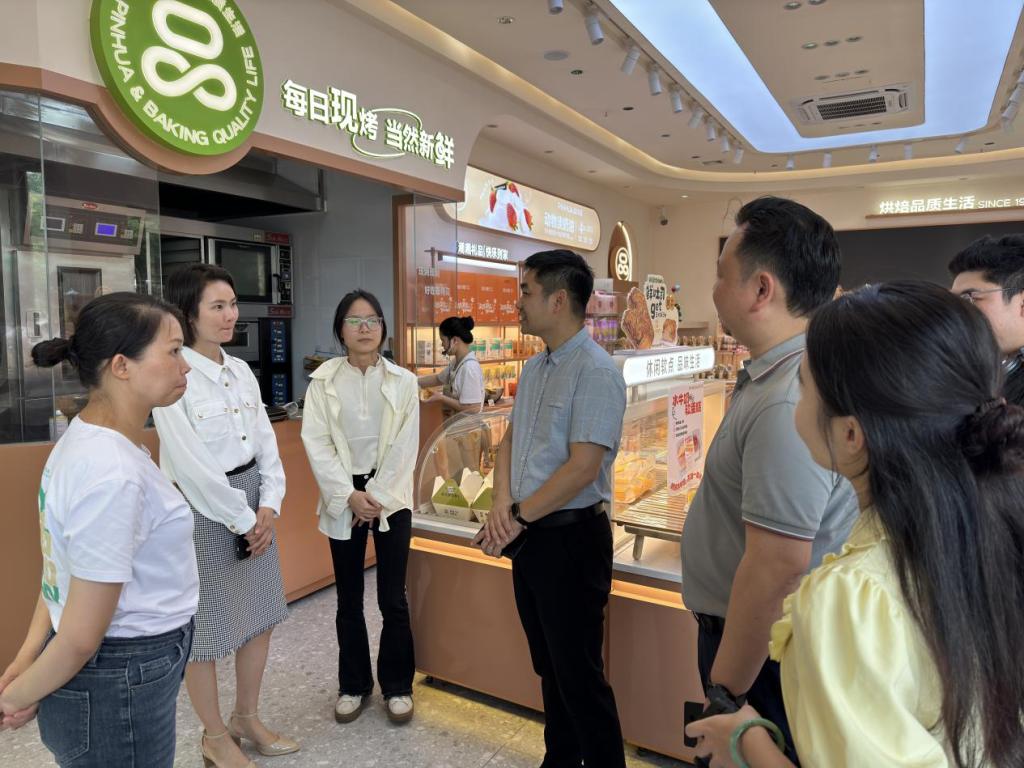 走访人员参观玉林市品华居食品有限公司(移动店)及生产基地总部,听取企业负责人的详细介绍,了解企业的日常工作状况和经营情况。