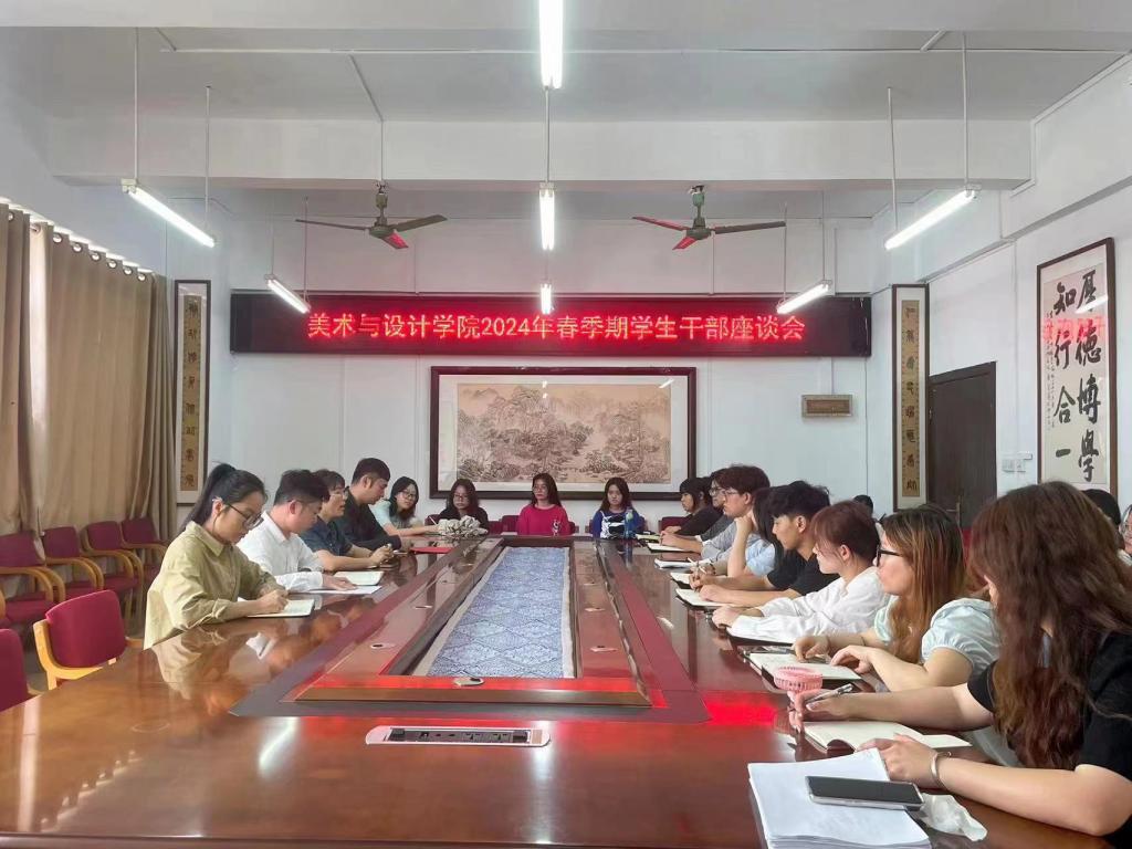 为加强学生干部的素质建设,整顿学生干部的工作作风,提高学生干部服务学院、服务师生的能力,4月2日下午,美术与设计学院于我校东校区博学楼3-407会议室召开2024年春季期学生干部座谈会。该院党委副书记周美艳、辅导员代表以及团委、学生会干部参加会议,会议由周美艳主持。