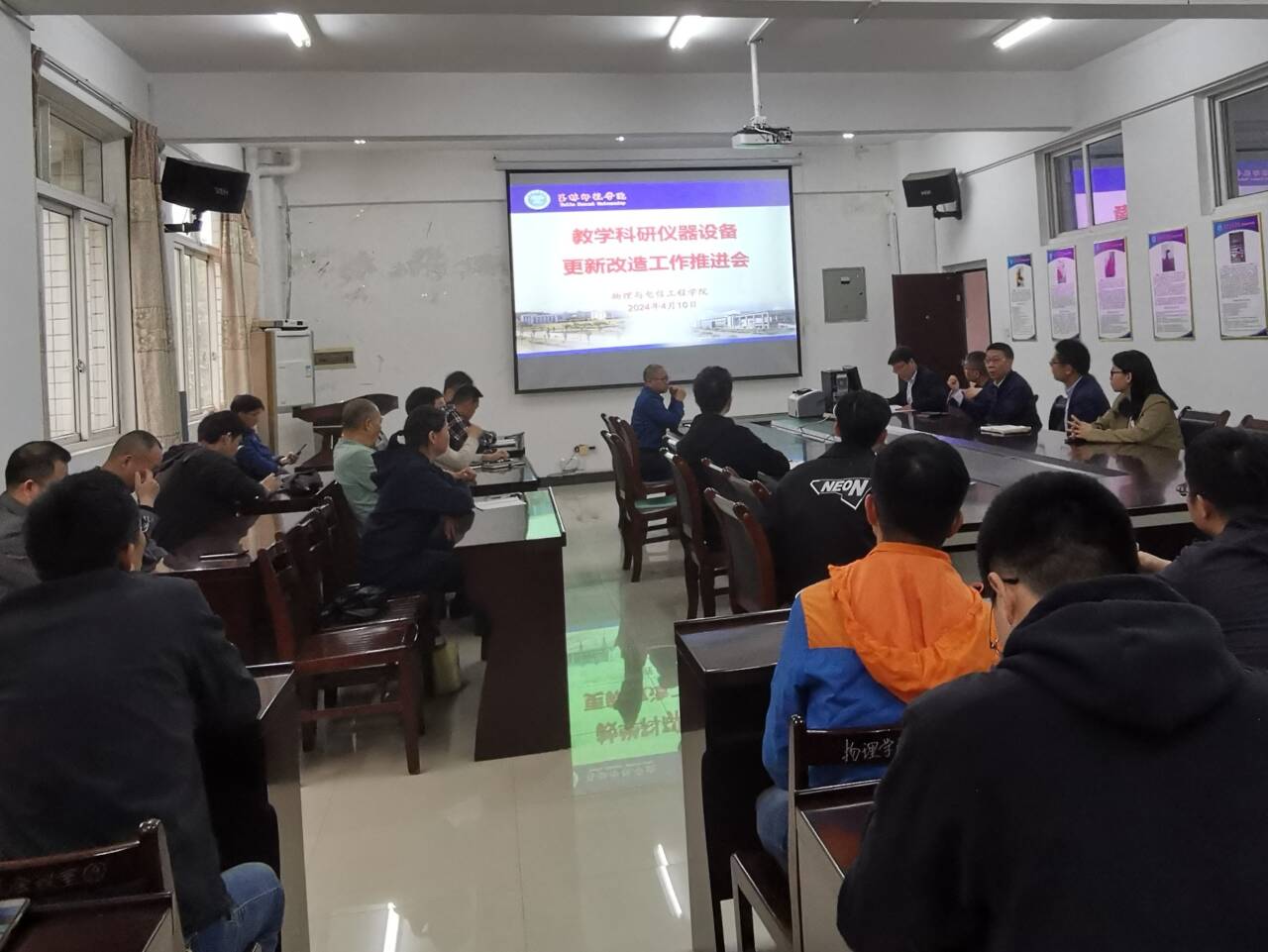 4月10日,物理与电信工程学院在东校区物电楼BG221会议室召开教学科研仪器设备更新改造工作推进会。该院领导班子,全体实验员、系主任、教研室主任、专业负责人以及科研秘书等参加会议。