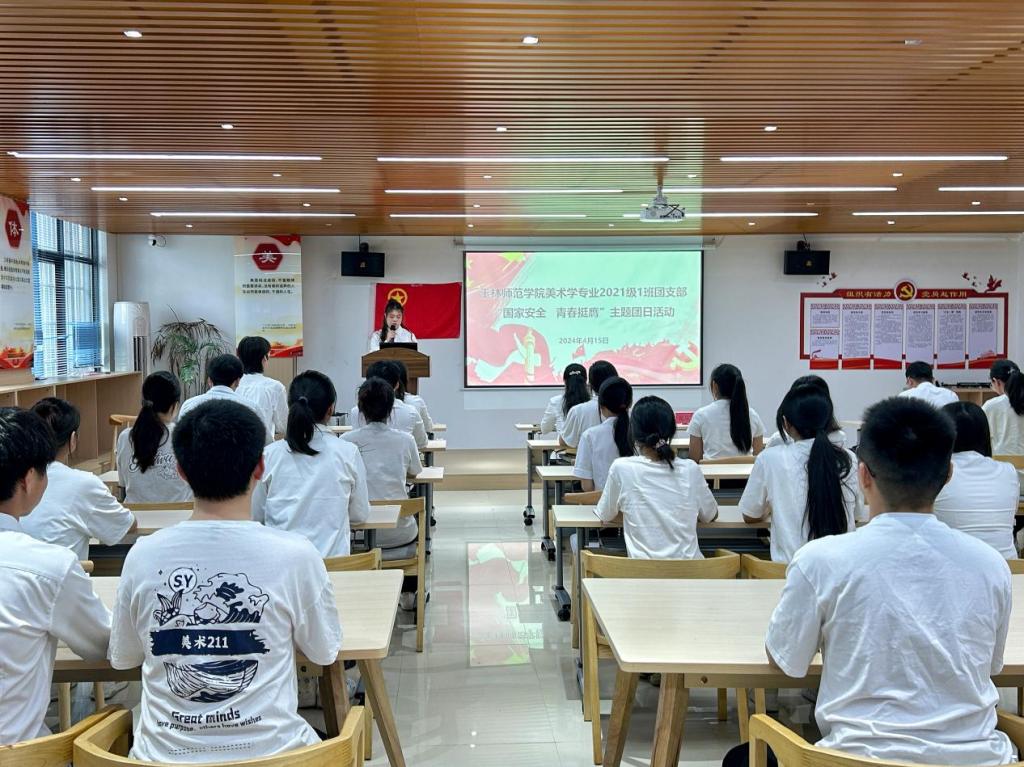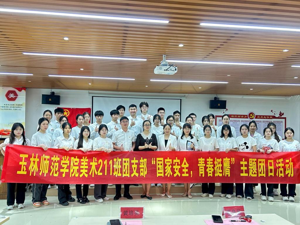 4月15日上午,我校美术211班团支部于我校东校区梅园挂榜书院开展“国家安全,青春挺膺”示范性主题团日活动。学校团委书记范良辰、团委副书记董积有,美术与设计学院党委书记黄培英、党委副书记周美艳、团委书记以及美术211班团支部全体团员参加此次活动,活动面向全区高校团支部进行线上直播。