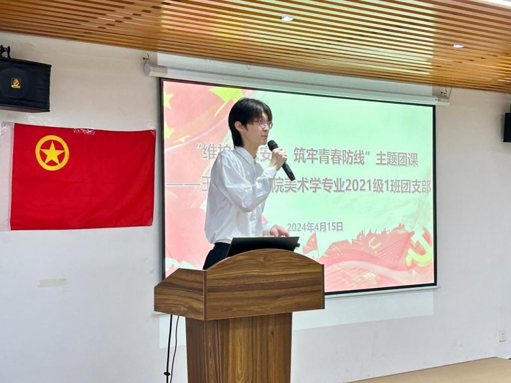 随后,美术211班团支部书记以“维护国家安全,筑牢青春防线”为主题上团课,团课主要围绕国家安全的重大意义、丰富内涵、核心要义、精神实质、实践要求等进行讲述,全体团员还共同学习国家安全法律法规、总体国家安全观、国家安全制度、大学生安全行为与规范等内容,并从树立国家安全意识、保守国家秘密、警惕外部渗透、自觉遵守法律法规、提高自身素质、积极参与社会治理等方面积极贡献青春力量。