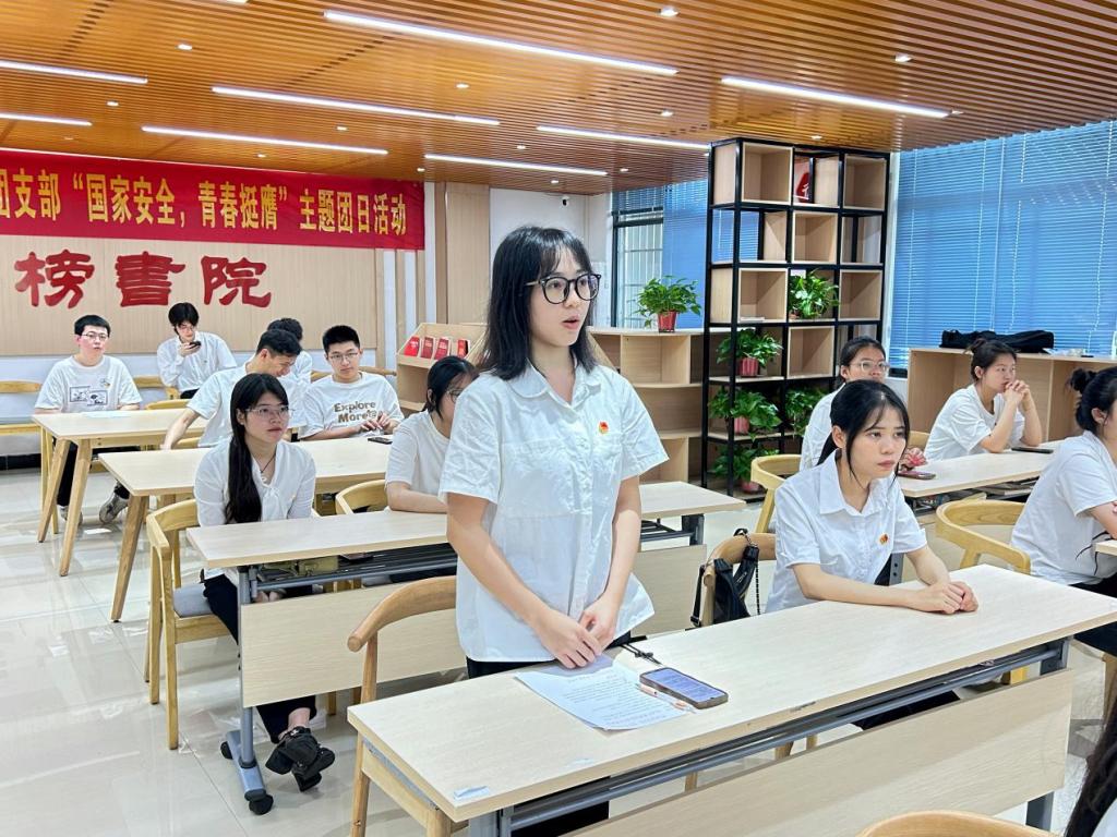 在主题交流环节中,团员们围绕活动主题、结合实践教育活动以及自身经历和感受踊跃发言,纷纷表示要齐心协力,共同构筑起国家安全的坚固防线,以实际行动,为国家的安全与发展贡献出自己的力量。随即重温入团誓词,践行青春誓言,洪亮的声音在教室中回荡,振奋的情绪在心底涌现,展现出共青团员心中强烈的责任感与荣誉感。