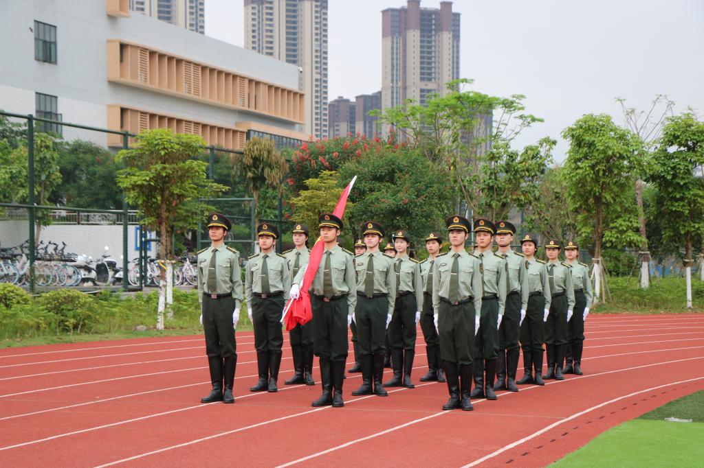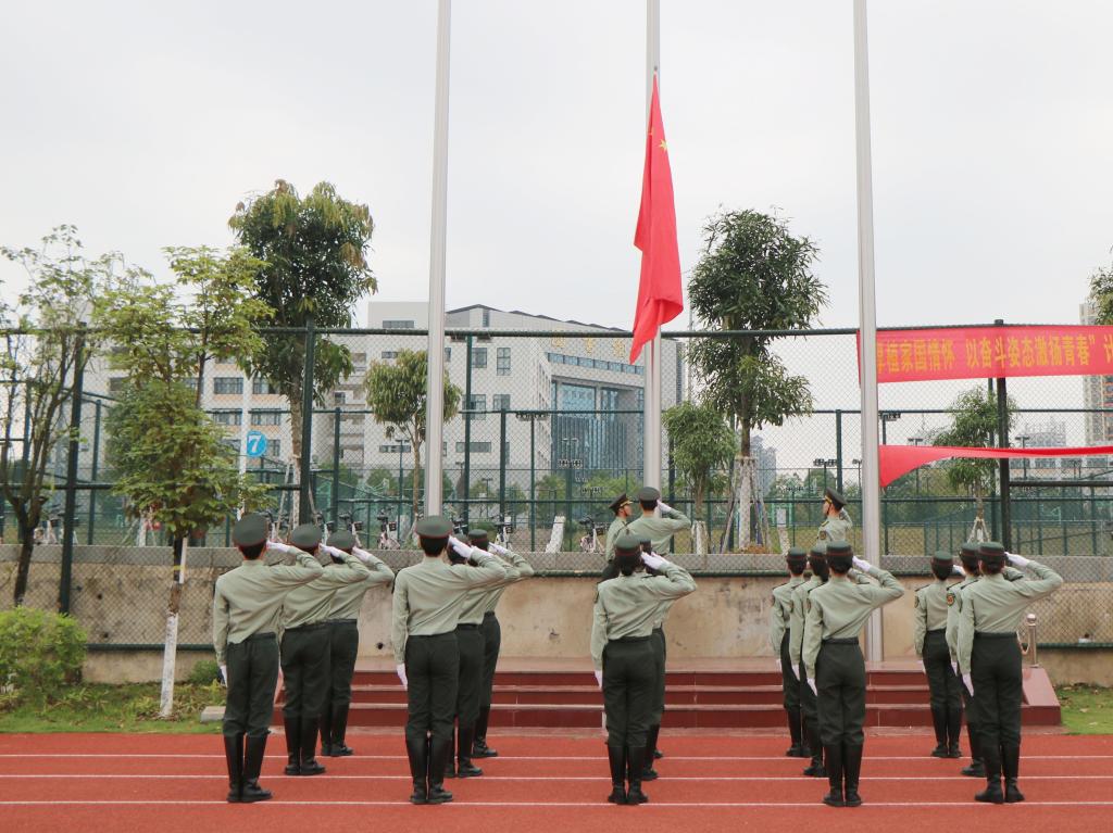 升旗仪式上,国旗护卫队员精神抖擞,步伐整齐。伴随着雄壮嘹亮的国歌,鲜艳的五星红旗冉冉升起,迎风飘扬。在场师生全体肃立,向国旗行注目礼,深情表达强烈的爱国热情和民族自豪感。