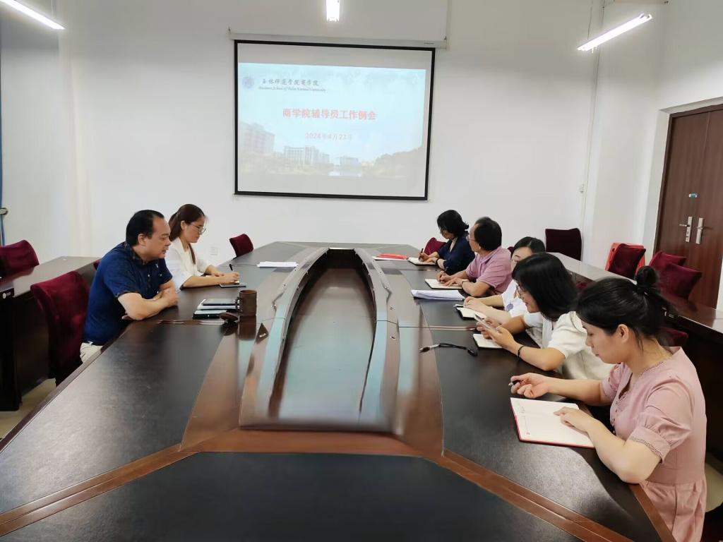4月23日,商学院于我校东校区清源楼A-221会议室召开辅导员工作例会。该院党委书记管金标,副书记赵伯妮以及全体辅导员参加会议。