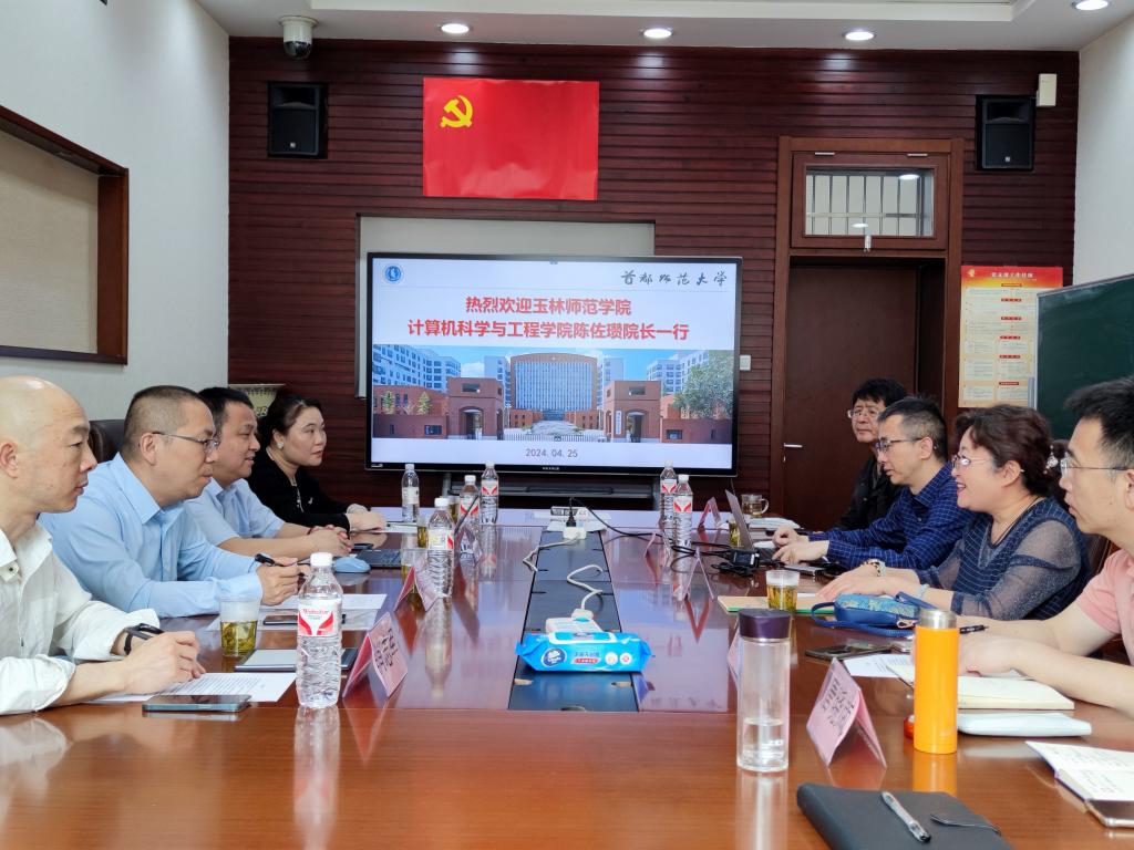 为加强院校间的交流合作,共同推进专业建设发展,4月25日上午,计算机科学与工程学院院长陈佐瓒、副院长彭义春一行赴首都师范大学信息工程学院进行友好合作交流。首都师范大学信息工程学院党委书记师怡爽、党委副书记兼副院长杨志刚、行政副院长张洪山、教学副院长陈文龙参加本次交流座谈会。