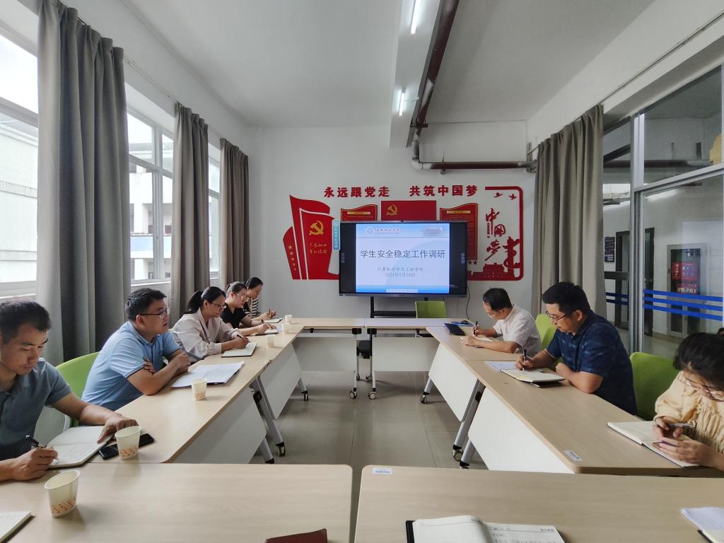 5月10日上午,学校学生工作处处长杨潇一行到计算机科学与工程学院开展学生安全稳定工作调研,并于厚德楼党建办公室召开座谈会。该院党委副书记莫文锋、全体辅导员参加会议。
