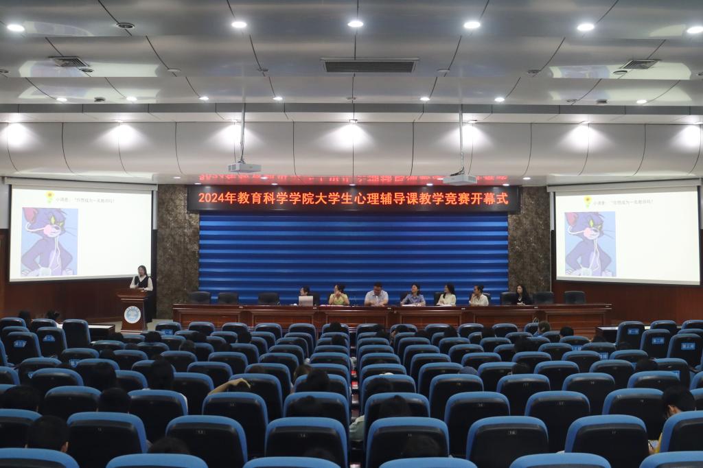 为进一步提升教育科学学院应用心理学专业学生心理辅导课教学能力和专业水平,传播学生中先进典型的备赛经验,5月10日,该院在东校区学术报告厅举办大学生心理辅导课教学竞赛开幕式。该院院长陈庆文出席开幕式,心理系主任主持活动,教育科学学院心理系全体师生参加开幕式。