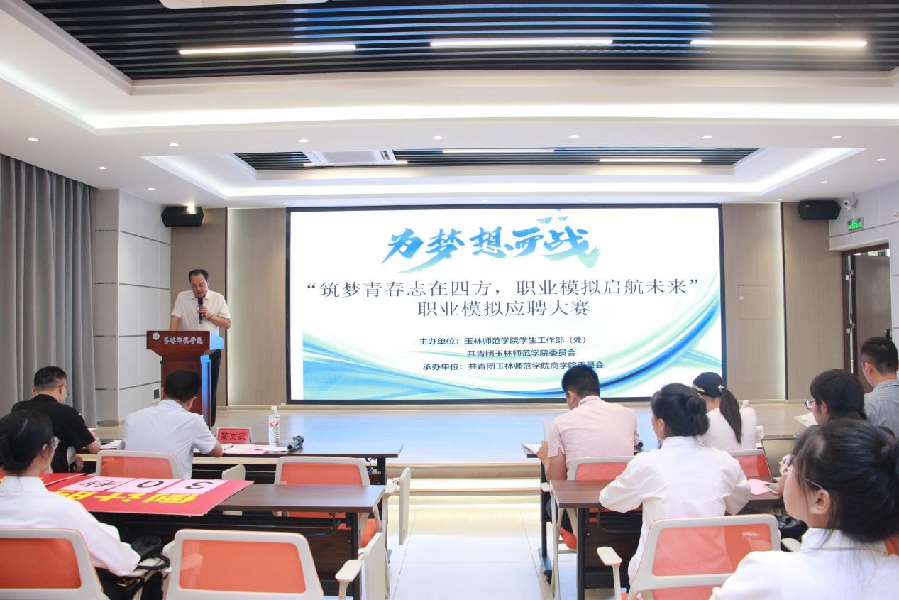5月13日,以“筑梦青春志在四方,职业模拟启航未来”职业模拟应聘大赛决赛在我校东校区崇德楼C-109教室举办。本次大赛由玉林师范学院学生工作处(部)、玉林师范学院招生就业处、共青团玉林师范学院委员会主办,共青团玉林师范学院商学院委员会承办。出席本次比赛的有该院党委书记管金标,评委老师,各二级学院参赛选手。