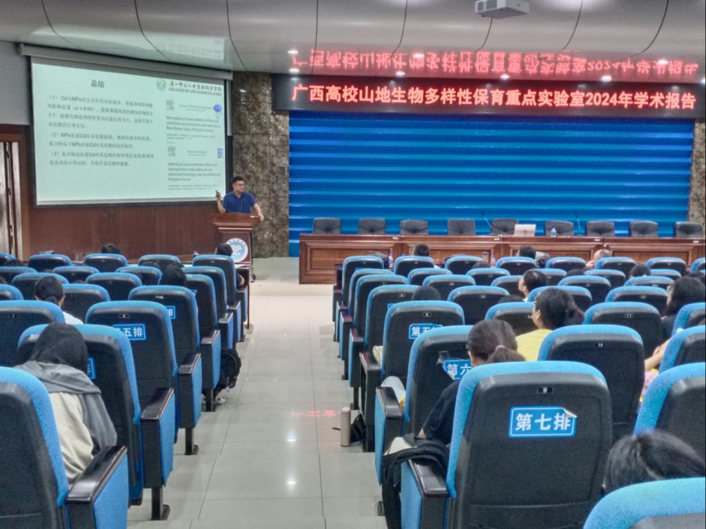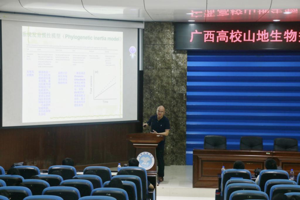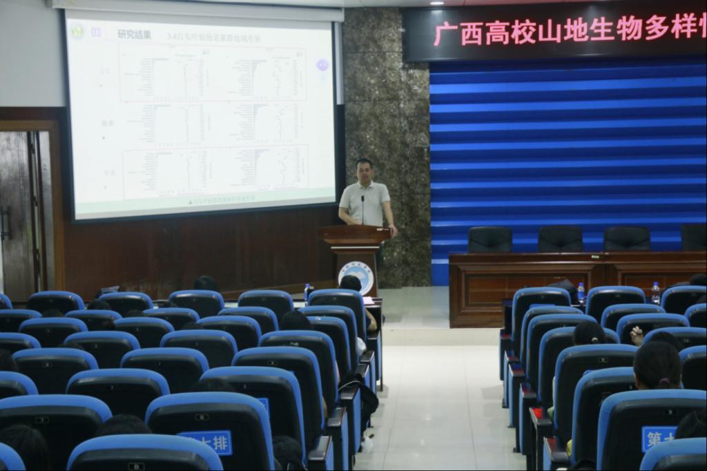 在学术报告环节,白坤栋教授做题为“植物生物地球化学生态位保守性研究进展”的主题报告;黄中豪教授做题为“石山灵长类的肠道菌群与生态适应”的主题报告;范鹏来副教授做题为“白头叶猴声音通讯:多样性、适应和功能”的主题报告;蒋骄云副教授做题为“Cd对中华圆田螺的毒性效应初步研究”的主题报告。(作者/陈剑虹 农俞乐 钟慧琪 黎琦)
