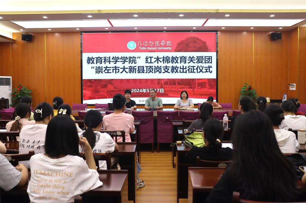 5月17日中午,教育科学学院于东校区明德楼310会议室举行“红木棉教育关爱团”崇左市大新县顶岗支教出征仪式暨安全教育。本次仪式由该院和小军副院长主持,该院辅导员代表,教师代表及本次支教活动志愿者参加。