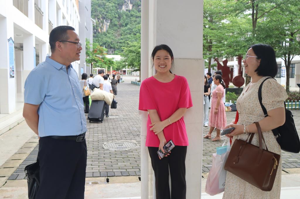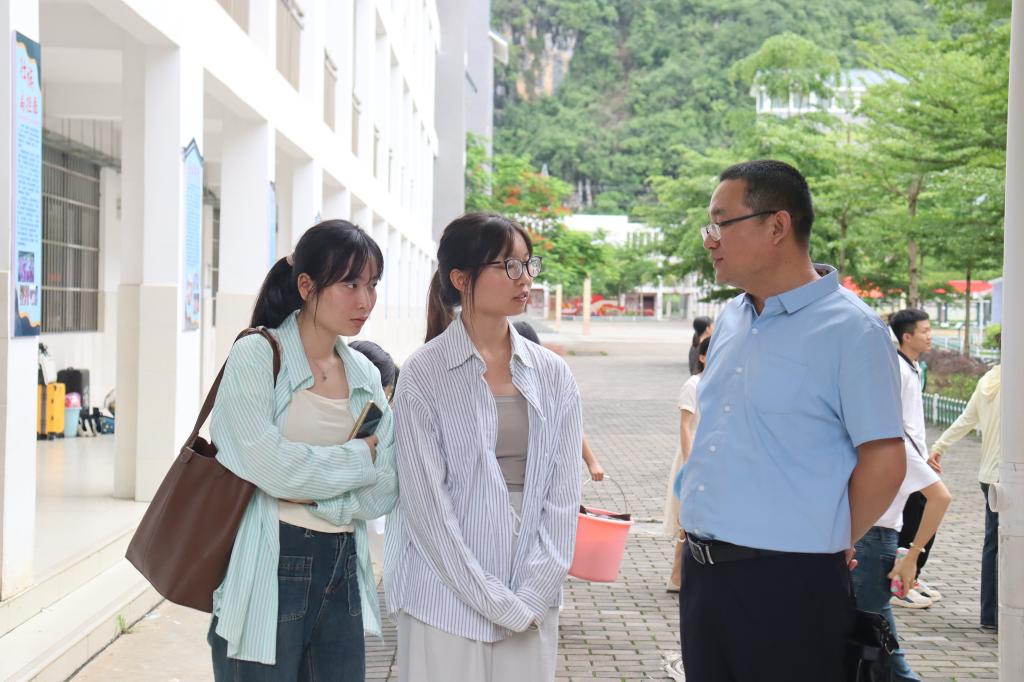 最后,和小军鼓励支教学生,指出“教育是一棵树摇动另一棵树,一朵云推动另一朵云”,支教学生要担负起教育传递者、文化传播者和文明传承者角色,不断提升自身教育教学能力,圆满完成支教任务。黄扬飞表示,各校将全力支持支教学生的教学工作并保障其生活条件。在大新县教育局的安排下,支教学生分别去往各支教学校,开展为期20天的顶岗支教活动。