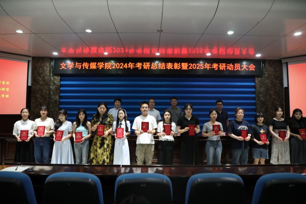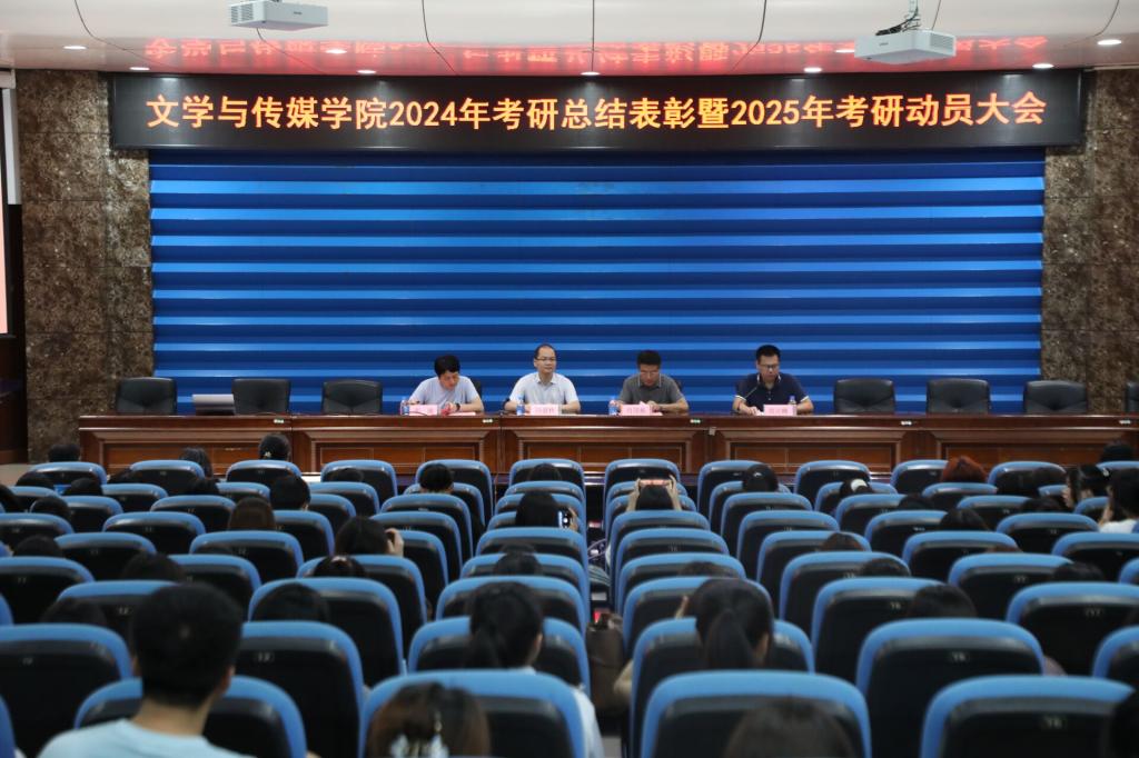 5月24日下午,文学与传媒学院在我校东校区学术报告厅开展2024年考研总结表彰暨2025年考研动员大会,此次大会由该院副院长郑立峰主持,党委书记冯健秋,院长肖国栋,副院长胡瑜,辅导员及该院全体有意向考研的学生参加。