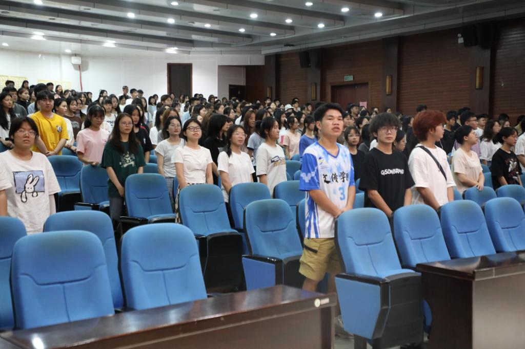 在领誓学生的带领下,全体参会学生起立进行郑重宣誓。