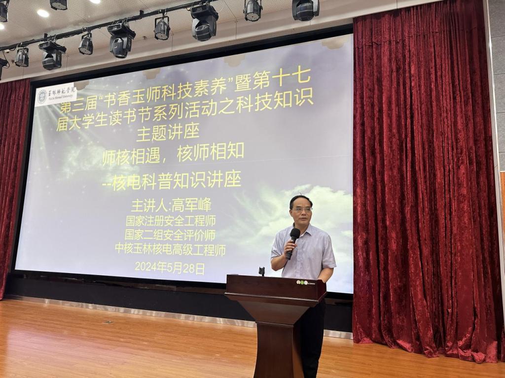 本次讲座是学校第三届“书香玉师 科技素养”暨第十七届大学生读书节科技知识主题讲座之一,进一步加强核技术知识宣传普及,拓展师生的知识面,希望吸引大家关注我国核技术的应用与发展。