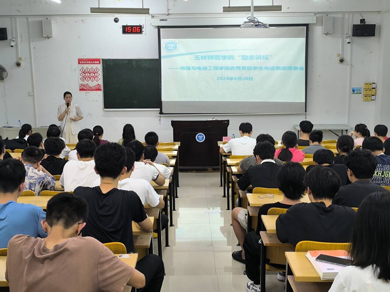 为贯彻落实立德树人的根本任务,进一步创新资助育人的方式,5月28日,物理与电信工程学院于我校东校区知行楼202教室召开2024年“励志讲坛”优秀受助学生报告会。该院党委副书记兼副院长覃艳超、辅导员以及受助学生代表参加会议。此次会议由辅导员主持。