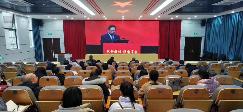 为贯彻落实习近平总书记关于大力弘扬教育家精神的重要指示精神,激励全校师生践行教育家精神,3月3日上午,学校组织师生代表通过线上线下的方式,集中观看了全国优秀教师代表“教育家精神”2024年巡回宣讲(广西站)活动,学校领导班子成员、科级及以上干部、行政人员、二级学院教师、辅导员、师范生等师生代表8500余人观看本次活动。