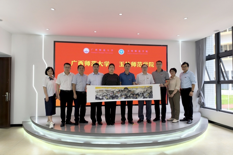 交流座谈结束之际,黄晓昀为我校送出广西师范大学文创作品作为纪念,参会双方合影留念。